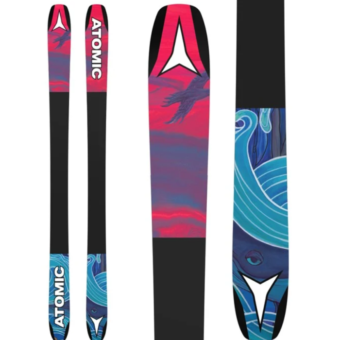 The Atomic Bent 90 is the ski Nico and Miguel Porteous refer to as “the Swiss Army knife” – the perfect all-mountain/park ski. HRZN Tech Tip & Tail give the Bent 90 the ability to float through pow laps in the morning and send the park in the afternoon. A Light Woodcore keeps the weight down and the performance responsive. Extra-durable Resist Edges provide lasting durability for endless rail slides. While the Bent 90 is a narrower ski than the bigger Bent Chetler 120, it still maintains the same attitude of creativity, self-expression, and versatility that make the entire range so effective. With topsheet and base art by Chris Benchetler, the Bent 90 channels a unique approach to the mountain both in design and aesthetics.