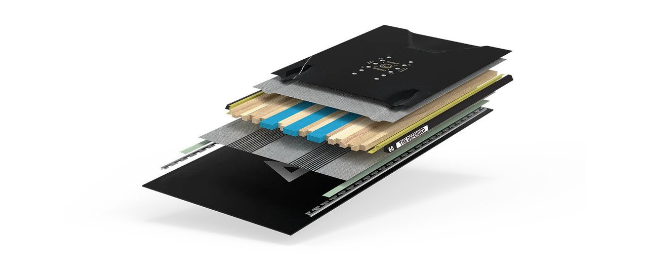 Utilizing an advanced electronic sorting system allows us to select mega-premium, reforestation certified, Poplar graded by weight and grain consistency. Comparable to Paulownia in strength to weight ratio, this core retains the poppiness of Poplar, and then achieves a signature feel by adding bonded post-consumer recycled Thermopolymer channels to form an advanced hybrid core. This mega-premium core will blast you into space and beyond.