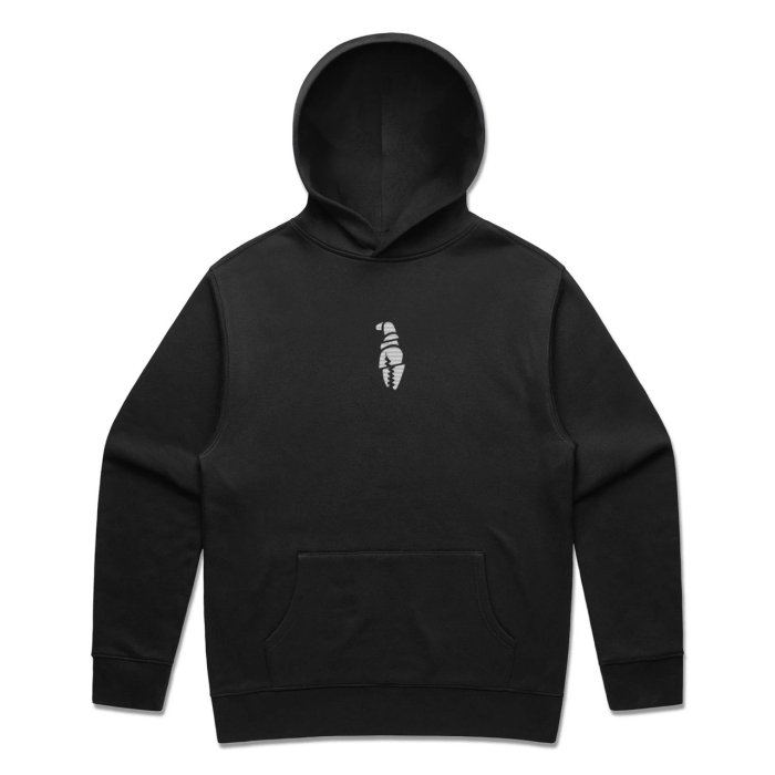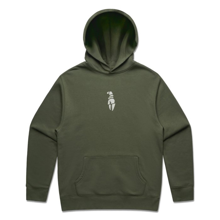 Chopped claw logo on the chest, and a chopped Crab Grab full logo print on the back. 20% recycled poly, 80% cotton mid-weight relaxed fit hoodie.