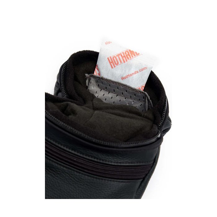 Heat Holders are internal stretch mesh pockets with velcro closures that sit directly over your hands and are designed to accommodate air-activated hand warmer packets. Their internal positioning hovers over the area of the hand with the highest rate of blood flow to support warmer overall circulation.