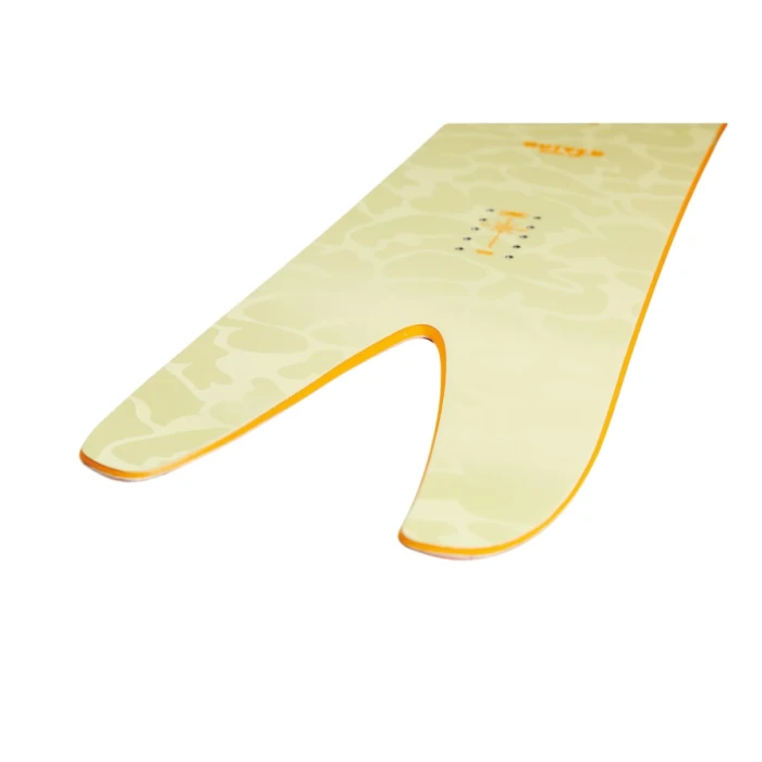 - Shape: Tapered Swallowtail – Floatation and control even in the deepest stuff. The full width nose and narrower tail of our Tapered Swallowtail shapes make the board float evenly through the fluffiest of pow and cut through the occasional crust, while the deeply cut swallowtail reduces the rearward board surface even more for improved control and reduced rear leg burn.