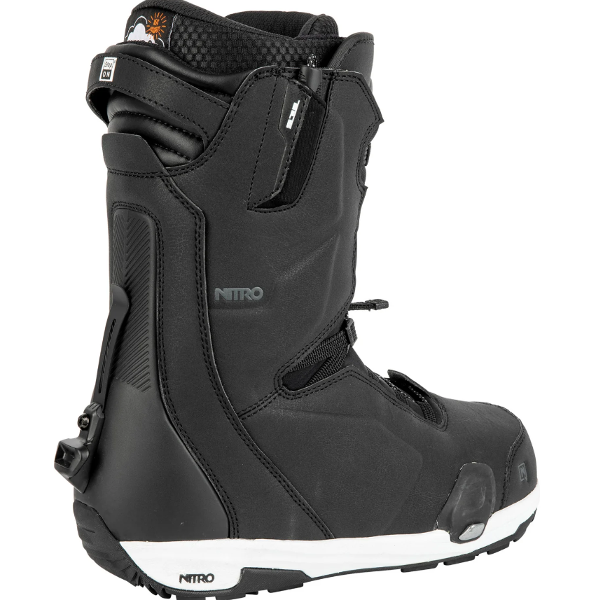 When the snowboarding community comes together, great things happen, from events and videos to products – Through collaboration, progression happens. The Profile TLS Step On® boot offers the ultimate blend of comfort and convivence, allowing you to get more runs in and stay out longer with a fit that lasts. The Profile TLS Step On® will provide a sure foothold and comfortable fit from early morning groomers to last run powder adventures. The Step On® Nitro Rubber Sole will provide the traction you need for exploration and the required durability you demand season after season. Meanwhile, the Armored Spine, Internal Ankle Support, Power Tongue Stiffener, and Re/Lace Liner Locker will provide a fit and properly distributed support found only in Nitro boots. Finally, your feet will be warm and toasty even on the coldest of summit hikes with the internal heat technology provided by the Cloud 9 Liner and Therminator Shield. If you are looking for the ultimate fit and groundbreaking quickness of the Step On® interface, then you need to step into the progression of collaboration between two snowboard innovators.