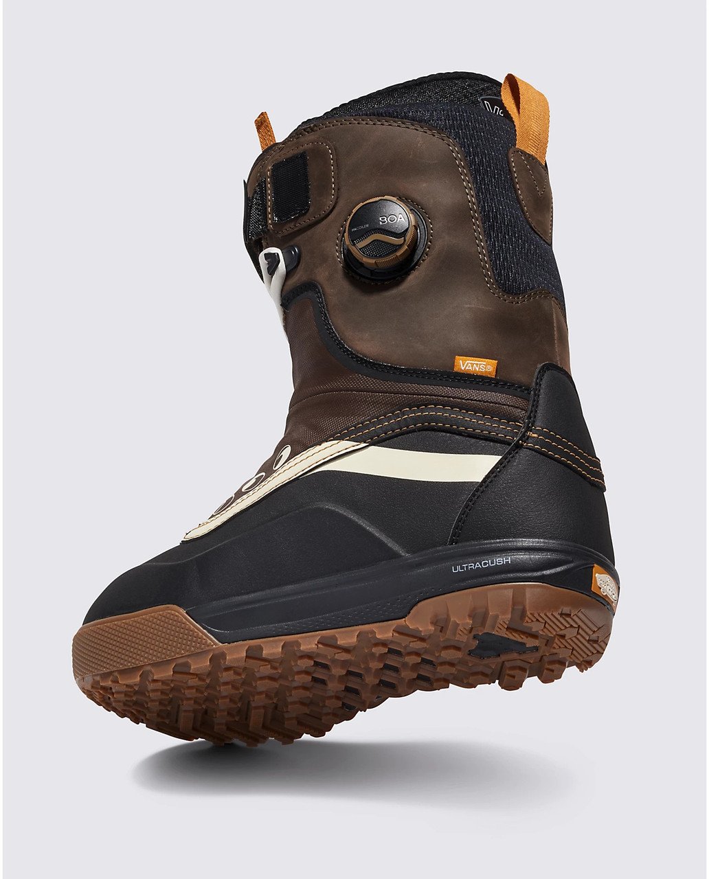 • V2 WAFFLE PRO OUTSOLE WITH ALL-TRAC COLD WEATHER RUBBER COMPOUND – The V2 Waffle Pro is built for both on- and off-snowboard performance. Uncompromising natural flex and a weight-reducing, impact-resisting UltraCush™ midsole provide incredible boardfeel, while a Vans-exclusive lug tread pattern and rubber compound give you the grip and traction you need to scramble the side country with confidence.